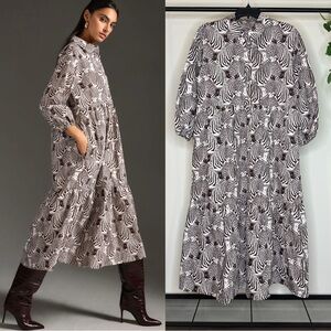Maeve by Anthropologie Bettina Tiered Midi Shirt Dress Zebra Print Motif Medium