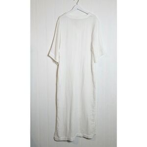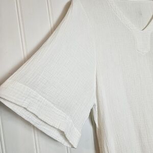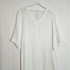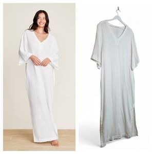 Barefoot Dreams Malibu White Crinkle Cotton V-Neck Caftan S Pockets