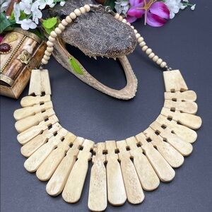 Unironically made vintage bovine bone collar choker necklace about 18 inches end to end.