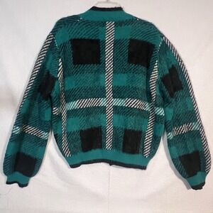 English Factory Checkered Cardigan Sz LG Green Tartan Plaid Oversized Sweater