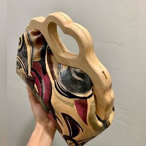Abstract Print Cowhide Leather Handmade Wooden Frame Bag Includes 2 Strap Styles