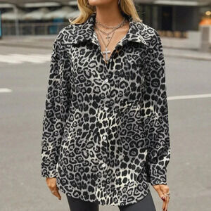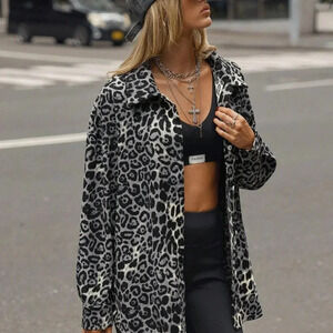 Multicolor Casual Women's Leopard Print Front Button Long Sleeve Jacket