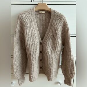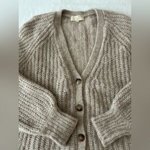 Elegant knit cardigan with button closure. Soft texture. Ideal for layering.