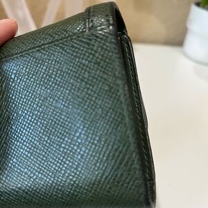 Authentic pre-loved. In a nice army green colored leather with gold hardwares. With very cute heart and key gold charm. Dark leather stain at the back of the wallet.