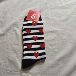 Black and White Striped Socks with Red Hearts Valentine Size 4-10 Unisex