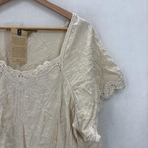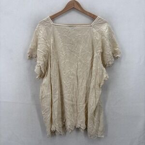 Democracy Shirt Womens 3X Beige Embroidered Boho Peasant Tunic Top Rayon Y2K