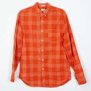 J. Crew Mens Classic Button Down Shirt Size M Orange Plaid Long Sleeve Office