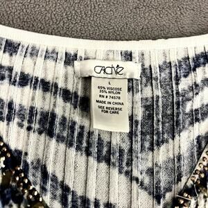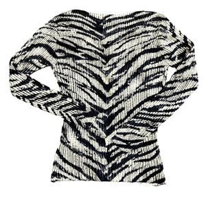 Cache Vintage Zipper Blue Zebra Print Long Sleeve Blouse Size L