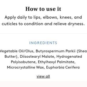 This amazing salve melts into lips and skin to hydrate, nurture and soothe... It is made with jojoba oil, Shea butter, grape seed oil, and lavender oil. Dap a little bit onto lips, elbows, knees, and cuticles or anywhere you need to condition and relieve dryness.