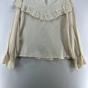 THML Blouse M Embroidered Ruffle Top Peasant Flounce Sleeve Cotton Cream