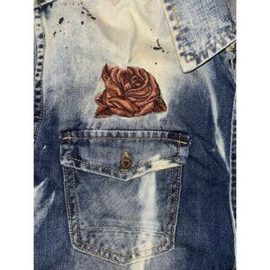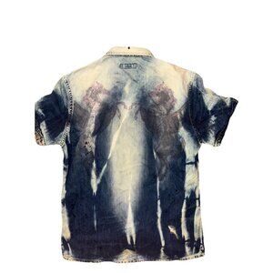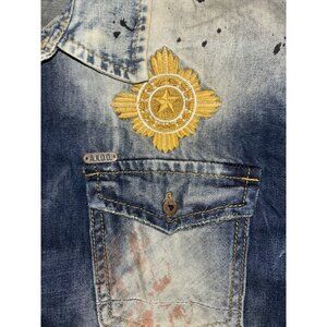 Men’s Akoo Acid Wash Denim Short Sleeve Shirt Embroidered Size L