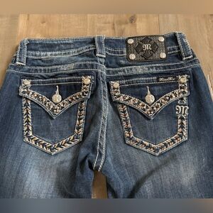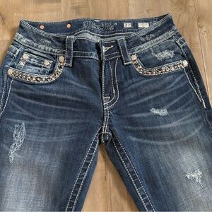 NEW Miss Me Signature Boot Cut Jeans Women 27 Denim Flap Pocket Beading Sequin