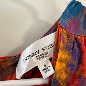 Show off your stunning shape in this stunning ruched tie-dye dress by Ronny Kobo.