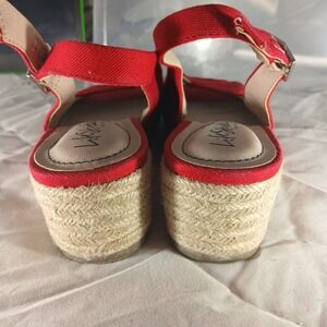 Life Stride Socialite Red Canvas Espadrille Wedge Sandals Size 8M Adjustable