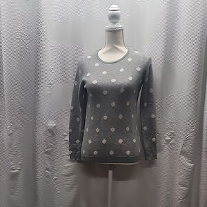 Talbots 100% Cashmere gray sweater with white polka dots. Perfect for casual wear. Soft and comfortable.. Size SP