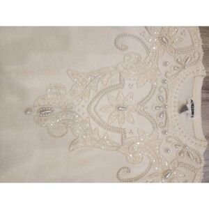 Vintage 80s Alfred Dunner Ladies Sweater Ivory Sequin Beaded Iridescent Medium.