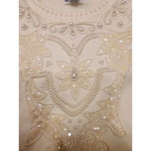 Vintage 80s Alfred Dunner Ladies Sweater Ivory Sequin Beaded Iridescent Medium