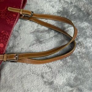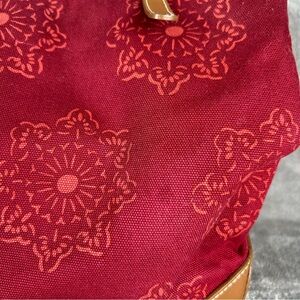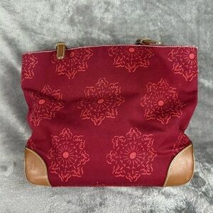 Banana Republic Tote Bag Maroon Canvas Leather Straps & Corners Retro Mandala
