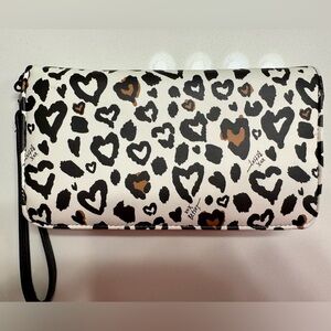EUC Betsey Johnson Heart Leopard Print Wristlet
