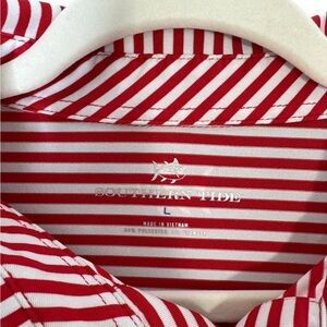 Southern Tide Performance Golf Polo Shirt Red White Striped Short Sleeve Mens L