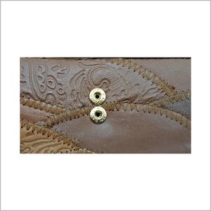 Stylish brown leather wallet with patchwork design. Perfect for everyday use.
