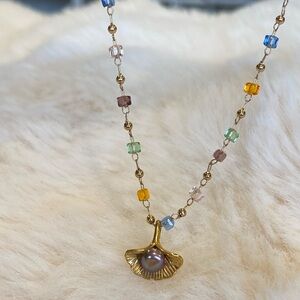GENUINE FRESH WATER PEARL Multicolor Beaded Necklace with Gold Pendant 16 inch