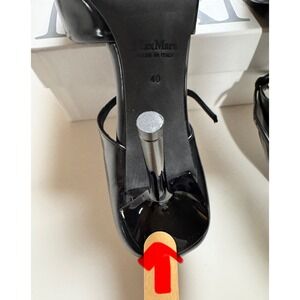 Keywords: Max Mara heels, patent leather shoes, stiletto pumps, pointed toe heels, Mary Jane heels, designer heels, Italian made shoes, evening shoes, dress shoes, elegant footwear, classy heels, sophisticated shoes