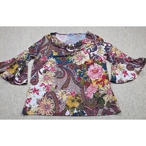 Premise Studio Womens Top Blouse XL Paisley Floral Print Bell Sleeve Cowl Neck