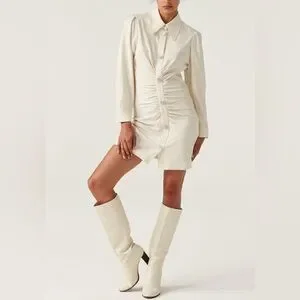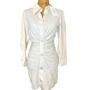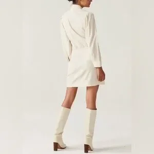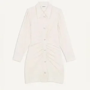 BA&SH Koane long sleeve collared mini dress white rhinestone buttons bridal S