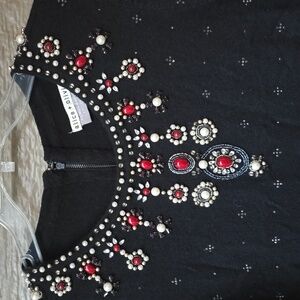 Alice + Olivia Beaded Pearl Embellished Short Sleeve Sweater Neiman Marcus M