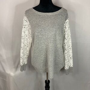 Halogen Gray Chunky Wool Blend Sweater with Lace Sleeves