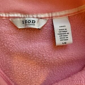 SEO keywords: IZOD pullover, quarter zip sweatshirt, pink half zip, fleece pullover, casual athleisure top, cozy sweatshirt, women’s IZOD top, lounge wear