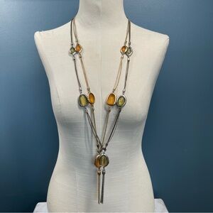 Chico’s 36” Silvertone Tassle Necklaces Lot of 2 Fall Colors