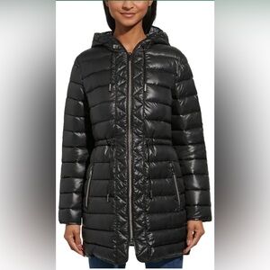 Kenneth Cole Women's Hooded Quilted Long Puffer Jacket Coat Size XS New with tag black color
