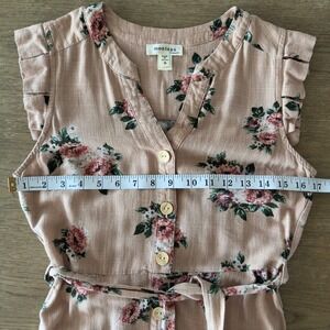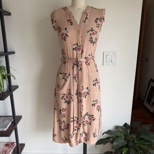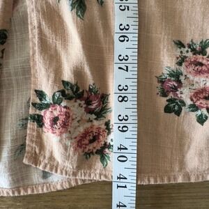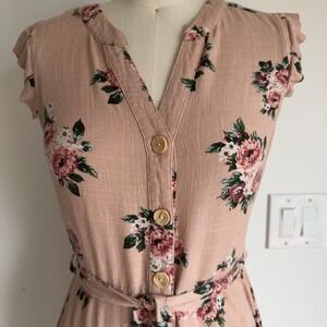 Monteau Rose Floral Linen Blend-Belted Button Up Flattering Sun Dress-Size S