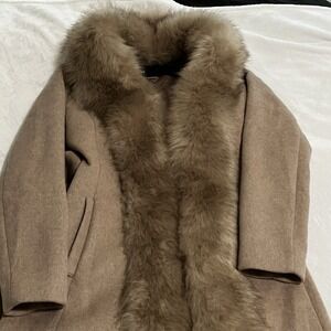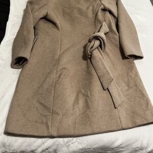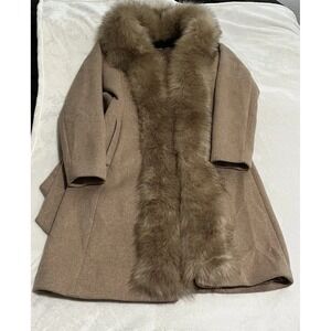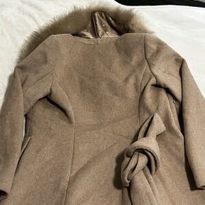 Marciano By Guess Wool Blend Coat Womens Size 2 Tan Camel Faux Fur Trim Belted