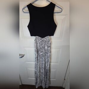 Donna Mizani X-Small maxi dress side cut outs sleeveless black and whited
