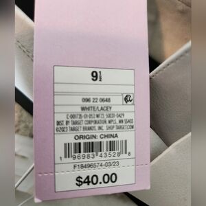 Elevate your shoe game with these stylish white lacey loafers from Wild Fable. Perfect for any fashion-forward woman, these flats feature a round toe shape and medium shoe width, providing both comfort and style. The 9.5 US shoe size and size make them a great fit for any shoe collection. These flats are versatile and can be worn for any occasion, from a casual day out to a more formal event. The white color adds a touch of sophistication to any outfit. Don't miss out on the chance to add these Wild Fable flats to your shoe collection.