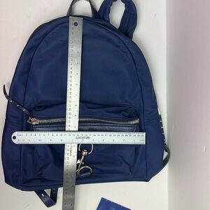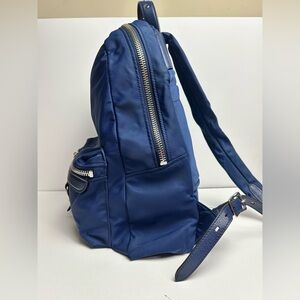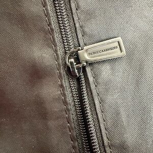 Inside has one zippered pocket , 3 open pockets and a notebook sleeve