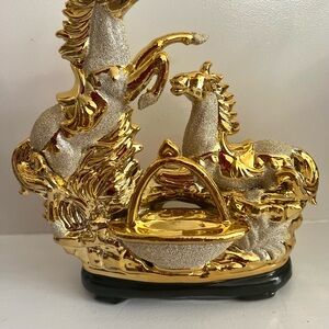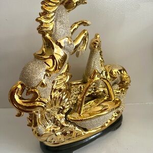 Elegant horse figurine in gold and silver. Perfect for home decor.