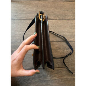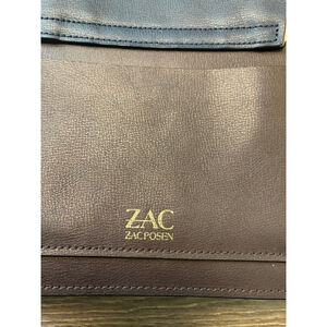 Zac Posen Katie Satchel Crossbody Leather Structured Top Handle Bag Purse Navy