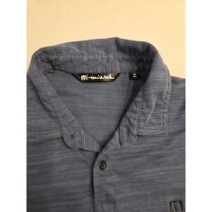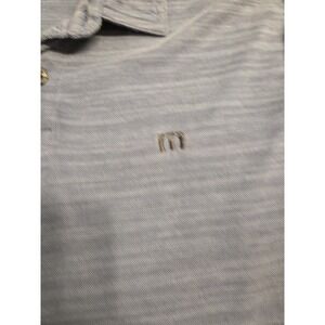 The Travis Mathew Golf Polo Shirt in men's medium size features a stylish geometric gray pattern, short sleeves, and a collared neckline with button closure. Made from a comfortable blend of polyester and Pima cotton, this lightweight shirt is perfect for various activities such as tennis, walking, or golf, as well as casual wear. Its breathable fabric and regular fit make it suitable for all seasons, while the Travis Mathew brand adds a touch of sports-themed style. Easy to care for with machine washable instructions, this polo shirt is a versatile and practical choice for any man's wardrobe.