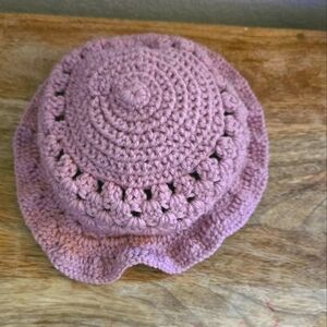 Handmade pink crochet toddler hat with ruffled brim (2–3 yrs)