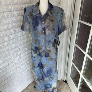 One of my all time favorites! A gorgeous floral dress in beautiful blue colors. Perfect for a Springtime wedding, graduation, or any afternoon soirée! The dress comes with a matching short jacket that still has the tags. Dress and jacket are machine washable. A truly darling piece that will make you feel just so pretty!
