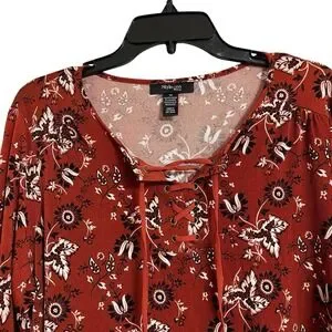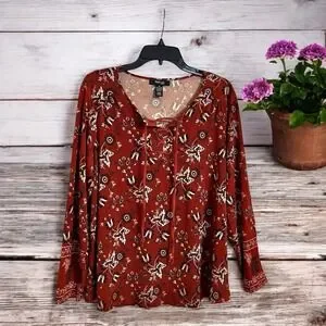Style & Co Women's Lace Up Tie Front Long Sleeve Floral Blouse Plus 1X NWT