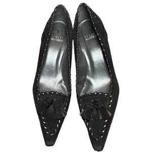 Stuart Weitzman Pointed Toe Heels Black Suede Tassels Size 6.5M