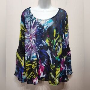 Cato Blouse XL Long Sleeve Sheer Lightweight Multicolor Casual Bell Sleeve B697