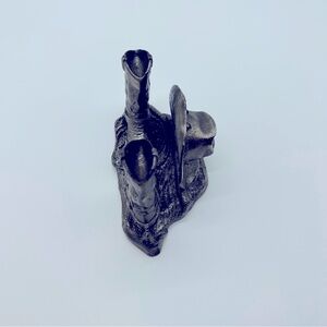 Very nice tin cowboy letter holder, boots, and hat. measurements 5 inches long ,two and three-quarter inches wide.