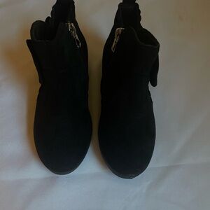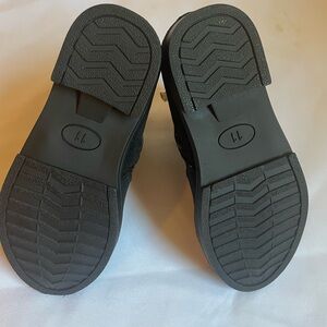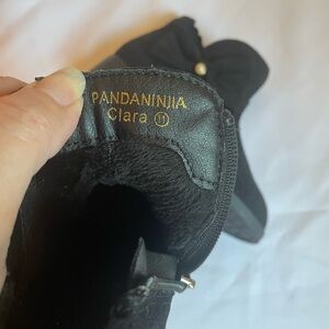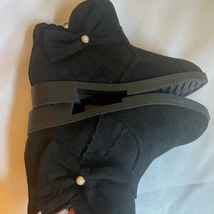 Stylish black kids Clara ankle boots from Pandaninjia featuring a charming bow with “pearl” detail. Perfect for any occasion. Cozy, fluffy lining. Cushioned footbed. Has side zipper for easy on and off. Great soles to help prevent slipping. NWOT. Size 11.