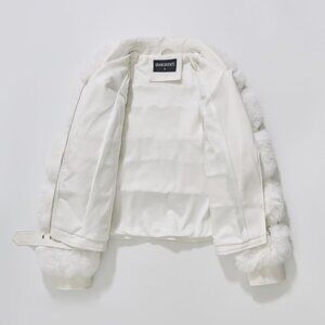 Women's Moto Style Cropped Faux Fur Leather Belted Biker Coat Zip Up White